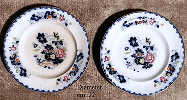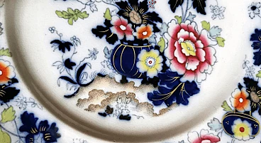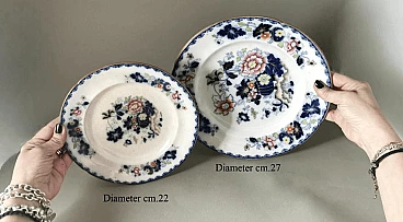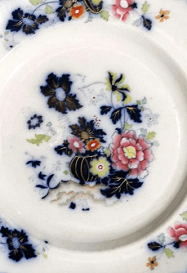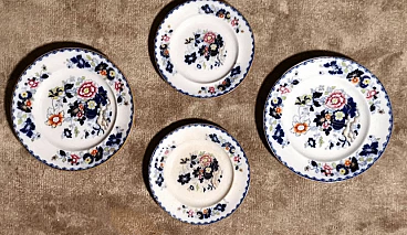 Raffinati ed eleganti piatti decorativi Vittoriani inglesi in ceramica. Il set è composto da due piatti da 27 cm e due da 22 cm. Perfetti da appendere alla parete. I piatti sono stati decorati con il metodo del "transferware", un tipo di lavorazione che si riferisce alle ceramiche smaltate e decorate con un trattamento specifico che si realizzava nello Staffordshire in Inghilterra. Si utilizzavano lastre di rame su cui veniva inciso il disegno, la lastra veniva poi inchiostrata e il disegno trasferito su un tessuto speciale che veniva successivamente applicato alle ceramiche (piatti, vassoi, zuppiere, etc.) che venivano smaltate e cotte. I primi a utilizzare questo processo di stampa furono John Sadler e John Verde di Liverpool nel 1756. Se osserviamo le ceramiche realizzate con questo metodo noteremo che i disegni non sono perfetti e spesso l'inchiostro è sbavato; questa è la loro caratteristica tipica. Un servizio di piatti dipinti a mano potevano permetterselo poche famiglie inglesi, ma con questo metodo anche le famiglie della classe media potevano avere un servizio di piatti decorati. I nostri piatti, dopo la lavorazione transferware (che era solo blu), sono stati rifiniti a mano con colori tenui e raffinati e poi cotti nuovamente in forno per fissare la colorazione; questi passaggi aggiuntivi li hanno resi ancora più preziosi e unici. Sono stati prodotti tra il 1837 e il 1840 in un laboratorio artigianale nello Staffordshire; non possiamo risalire al nome dell'azienda perché gli artigiani utilizzavano "Royal Arms" come marchio di fabbrica senza includere il nome dell'azienda, come spesso accadeva quando i laboratori erano piccoli e avevano pochi dipendenti. Tuttavia, la produzione dell'officina doveva essere di alto livello, infatti il marchio "Royal Arms" (lo stemma reale del Regno Unito, che comprende il leone inglese e l'unicorno scozzese che sostengono lo scudo con la corona reale) poteva essere utilizzato legittimamente solo da aziende in possesso di un mandato reale. La regina Vittoria ha stabilito un regolamento preciso per l'uso di questo prestigioso marchio reale nel 1837. Durante i suoi 64 anni di regno, la Regina e la sua famiglia sono stati responsabili della concessione di più mandati reali che mai, più di 2000. Analizzando la grafica del nostro marchio possiamo datarlo tra il 1837 e il 1840. I piatti sono in buone condizioni; uno di quelli piccoli presenta un effetto craquelé originale. I piatti grandi sono alti 3 cm e hanno un diametro di 27 cm. I piatti piccoli sono alti 2 cm e hanno un diametro di 22 cm. Per tutte le nostre spedizioni utilizziamo materiali di imballaggio speciali (casse di legno su misura, polistirolo, etc.) per garantire la massima protezione e sicurezza degli articoli.