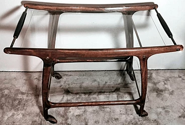 Carrello bar in noce con piani in vetro di Cesare Lacca, anni '50