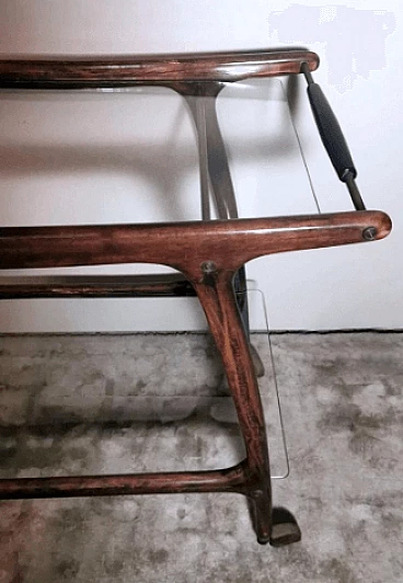 Carrello bar in noce con piani in vetro di Cesare Lacca, anni '50 6