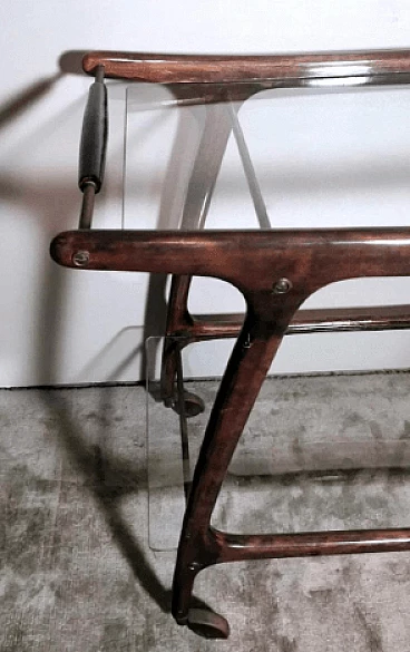Carrello bar in noce con piani in vetro di Cesare Lacca, anni '50 4