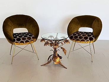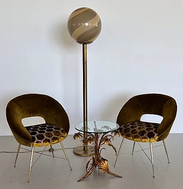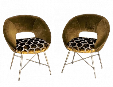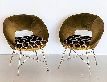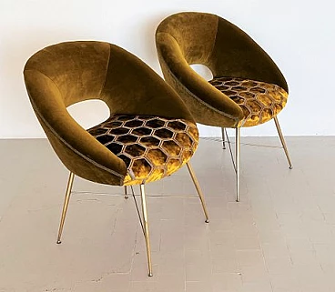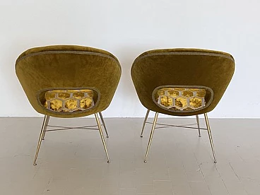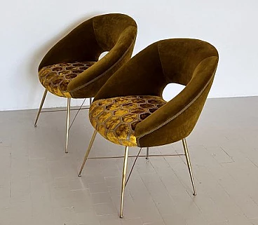 Coppia di poltrone in velluto con gambe in ottone di Silvio Cavatorta, anni '50
