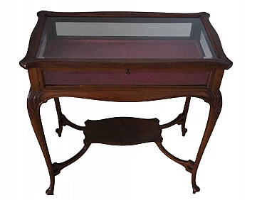 Tavolino Edoardiano in mogano con vetrina, fine '800