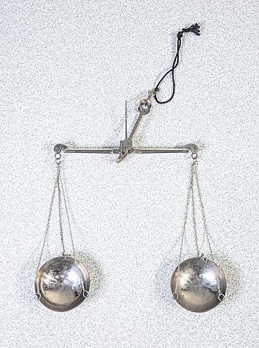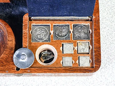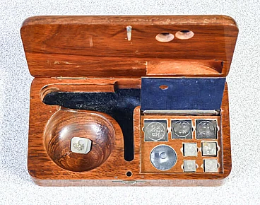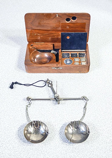 Bilancino di precisione con pesi e custodia in legno, inizio '900