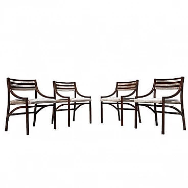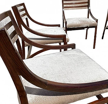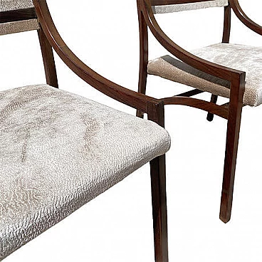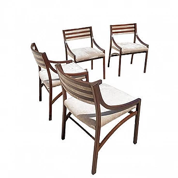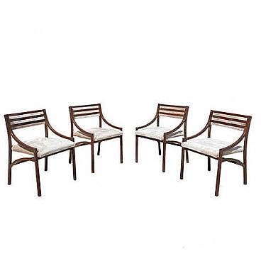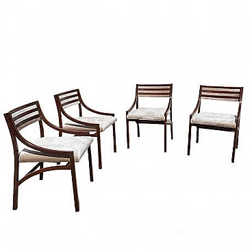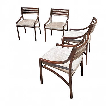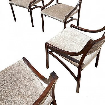 Set di quattro sedie mod. 110 di Ico Parisi per Cassina, anni '60 (1961). La struttura in palissandro è stata lucidata, la seduta è stata rivestita in velluto Jacquard beige. Perfette condizioni strutturali, lievi segni di usura dovuti al tempo. Altezza della seduta: 47 cm. Bibliografia: R. Lietti, Ico Parisi. Design catalogo ragionato 1936‐1960, Silvana Editoriale, Cinisello Balsamo 2017, p. 546.