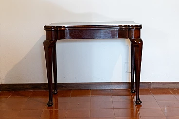 Tavolino da gioco in legno con gambe cabriole, anni '40
