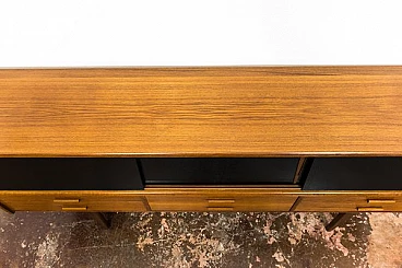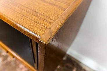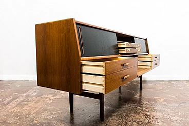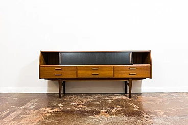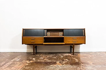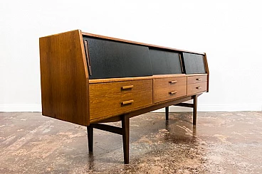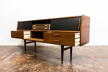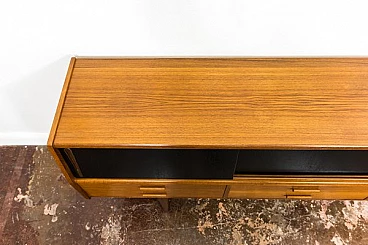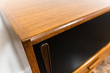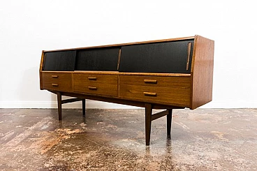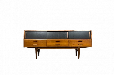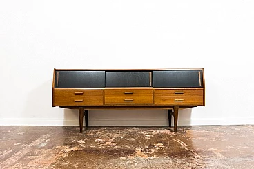 Credenza danese in teak con cassetti e ante scorrevoli nere, anni '60