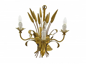 Lampadario con spighe di grano dorato, Hollywood regency, anni '70