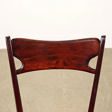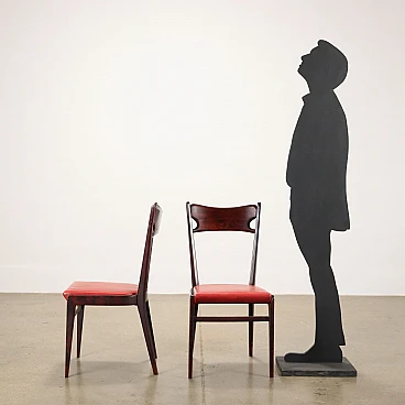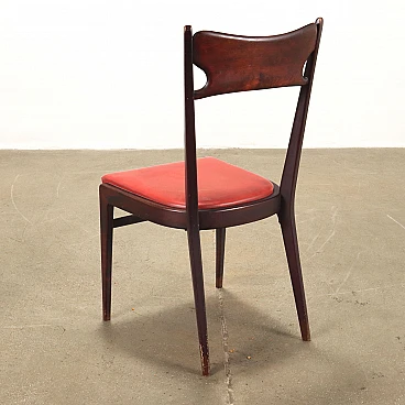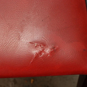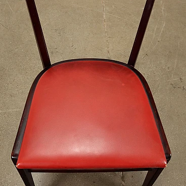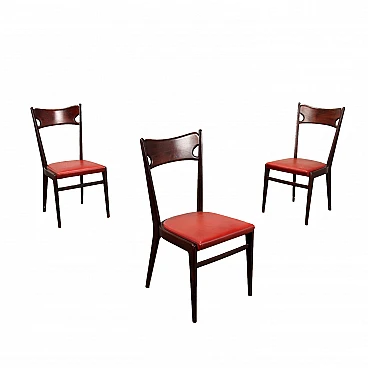 3 Sedie in faggio tinto e skai rosso, anni '50