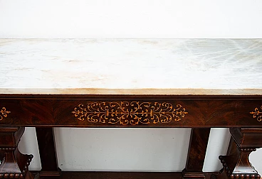 Consolle Smith in piuma di mogano con innesti di intarsio in acero, inizio '800