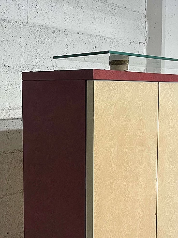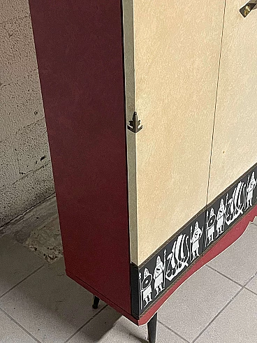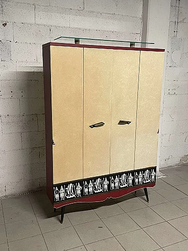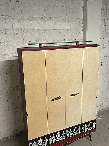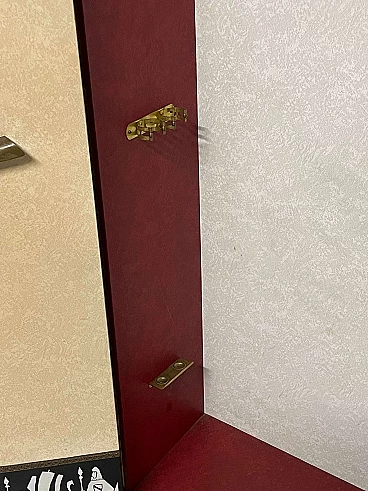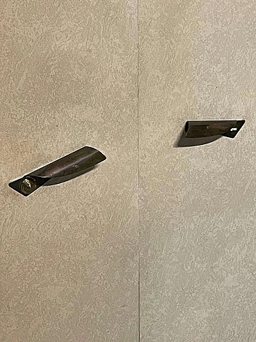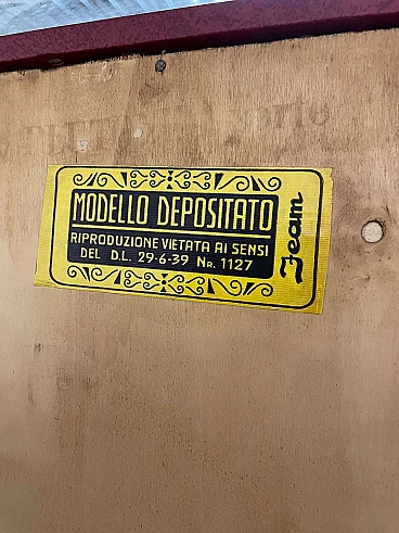 E' presente marchio posteriore riportante modello depositato da parte di Feam, piccola realtà artigianale italiana specializzata negli anni '50 - '60 nella realizzazione di arredi per interni. Condizioni molto buone, pochissimi e minimi segni del tempo, si segnala solo un pezzetto di skai leggermente ritirato nella parte bassa della prima anta a destra (vedi foto).