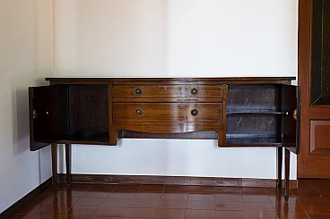 Credenza in mogano con maniglie in ottone di Leonard Moore, anni '60