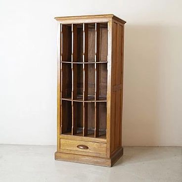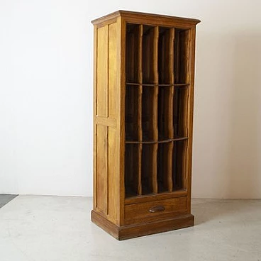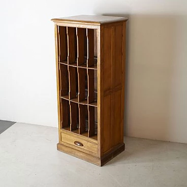Mobile da archivio postale in noce con scomparti a giorno e cassetto, anni '40