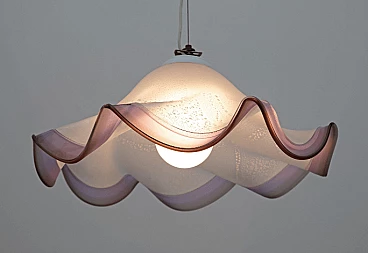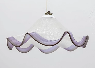 Lampada a sospensione in vetro di Murano con foglia d'argento, anni '70
