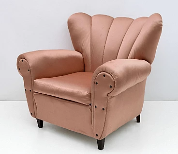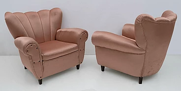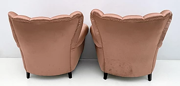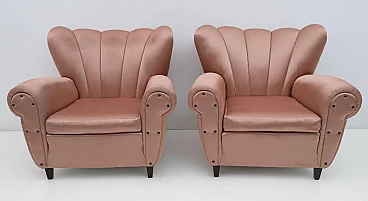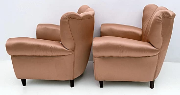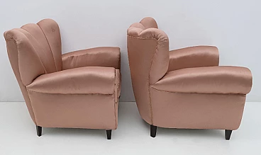 Coppia di poltrone in legno e raso nello stile di Guglielmo Ulrich, anni '50