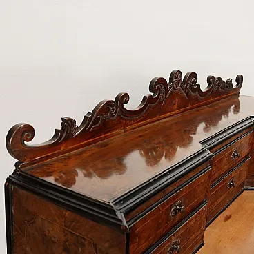 Scrittoio Barocchetto in legno massello impiallacciato in radica di noce con filettaure in acero, secondo quarto '700