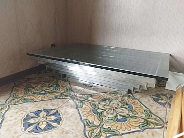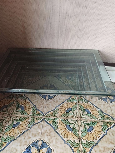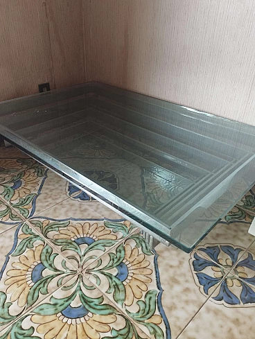 Tavolino rettangolare in acciaio e vetro di David Hicks, anni '70