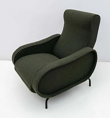 Poltrona reclinabile in bouclè verde di Marco Zanuso, anni '50