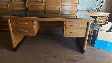 Scrivania in palissandro e vetro verde di Anonima Castelli, anni '60