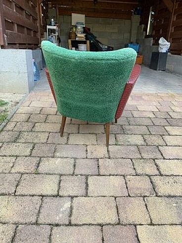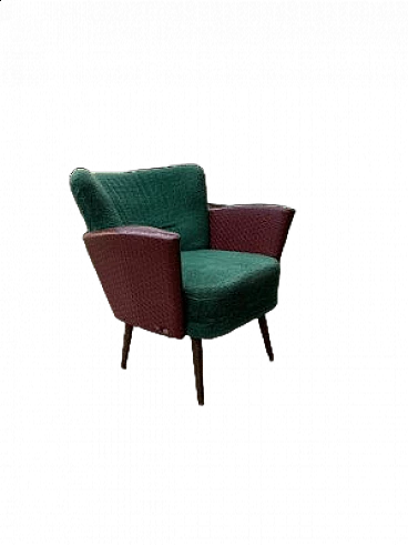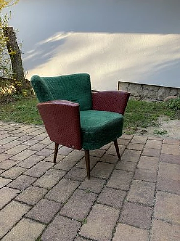 Poltrona ungherese in legno, tessuto e similpelle, anni '50