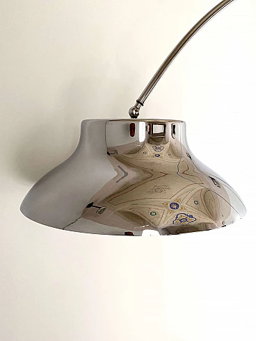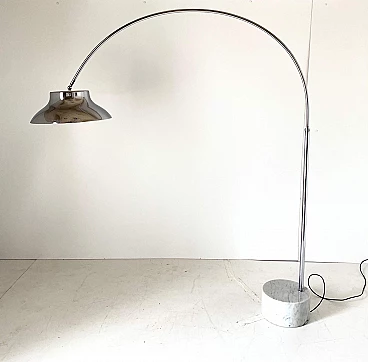 Lampada da terra cromata ad arco con base in marmo di Carrara, anni '60