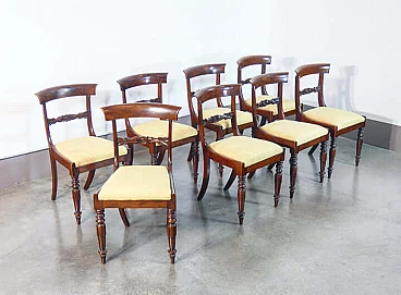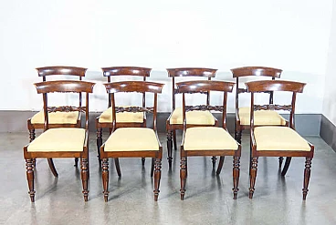 8 Sedie Direttorio in massello di faggio e tessuto, inizio '800