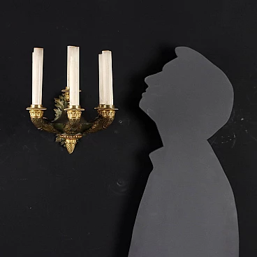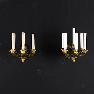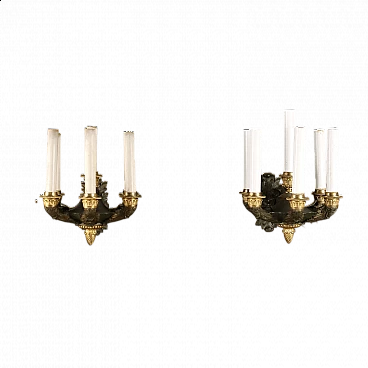 Coppia di applique stile Impero in bronzo brunito e dorato, inizio '900