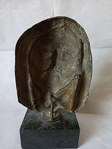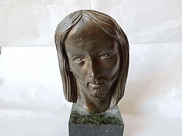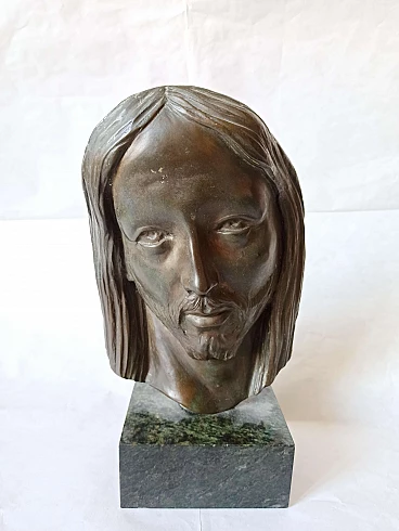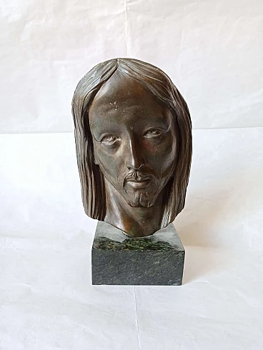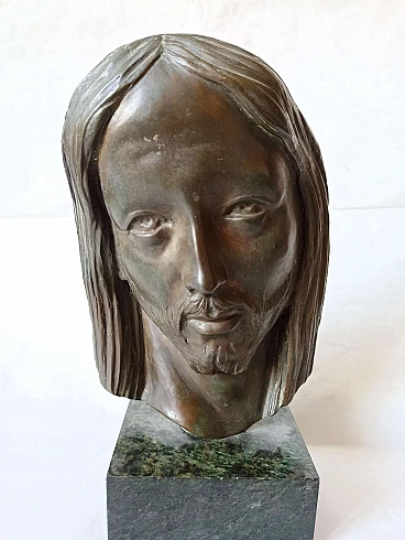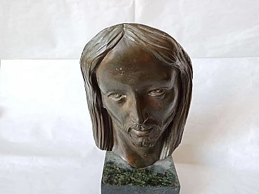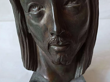 Velotti, volto di Cristo, scultura in bronzo su base in marmo, anni '40
