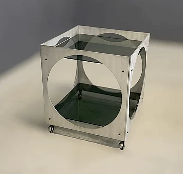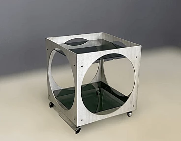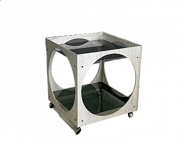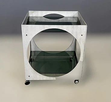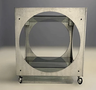 Tavolino con rotelle in alluminio e vetro di Lorenzo Burchiellaro, anni '70