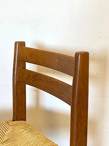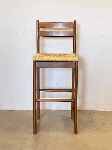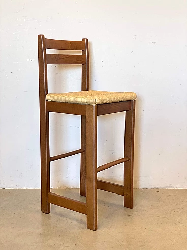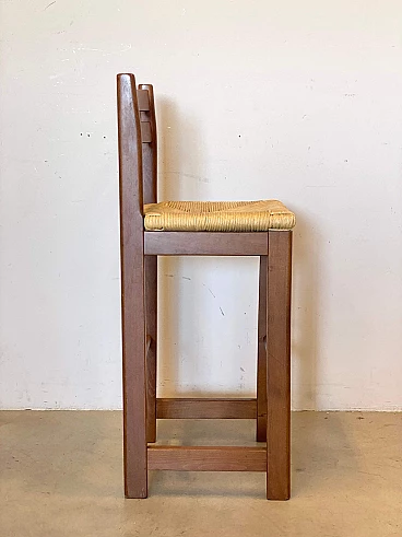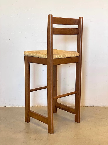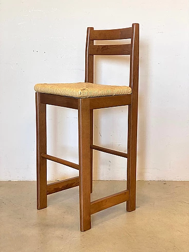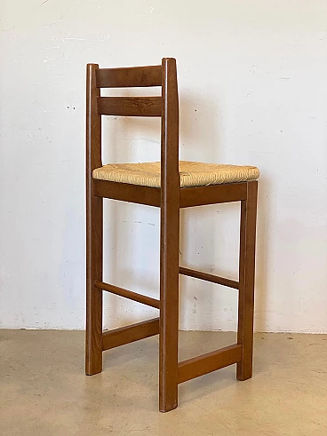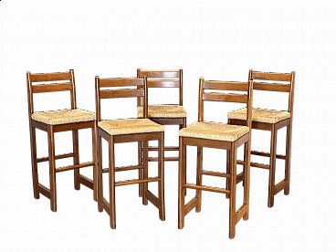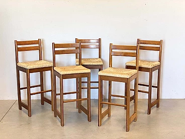 5 Sgabelli da bar in faggio e paglia, anni '80