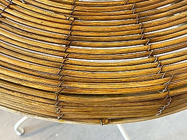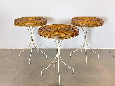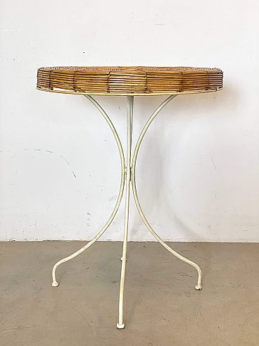 Tavolino in ferro battuto bianco e giunco, anni '70