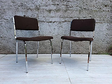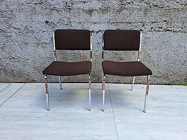 Coppia di sedie imbottite con struttura in metallo cromato, anni '90