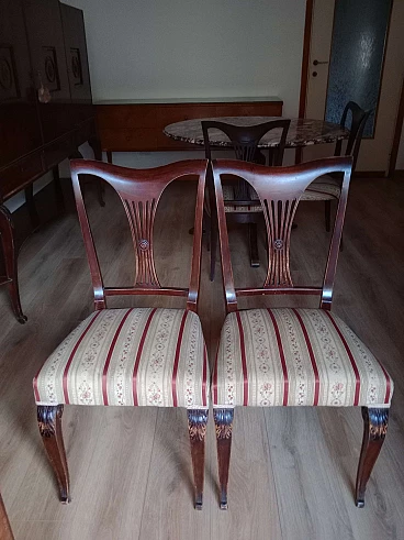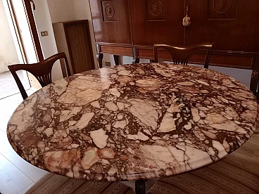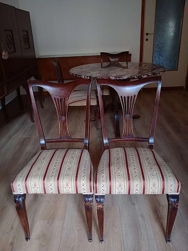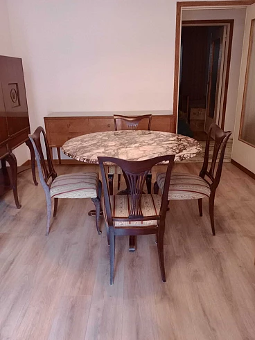 Tavolo rotondo in mogano e marmo con 4 sedie di Fratelli Barni anni 50