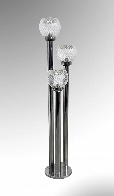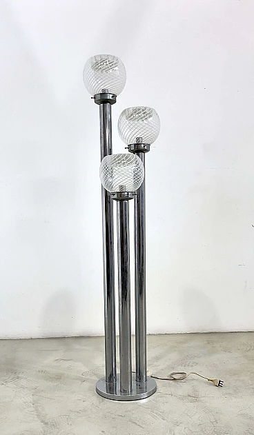 Lampada da tavolo in metallo cromato e vetro di Murano, anni '70