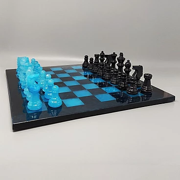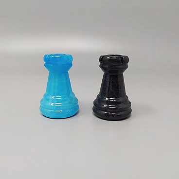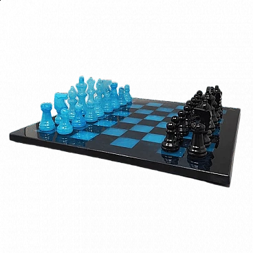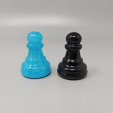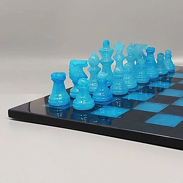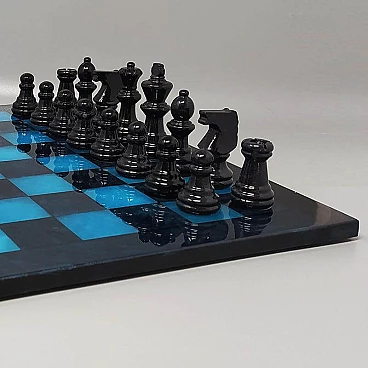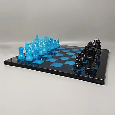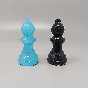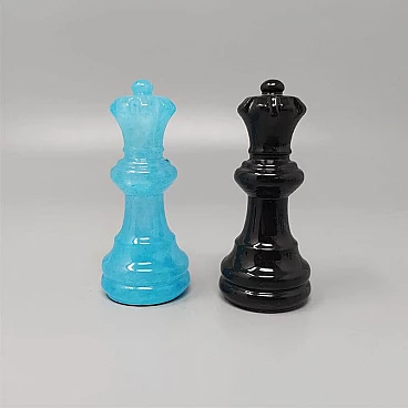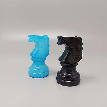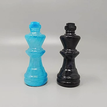 Scacchi in alabastro di Volterra blu e nero fatto a mano, anni '70