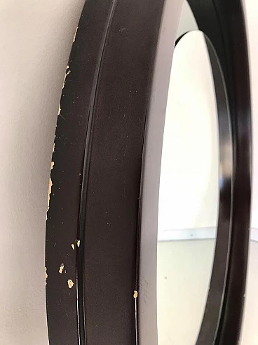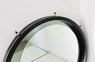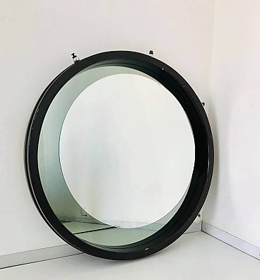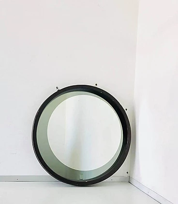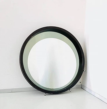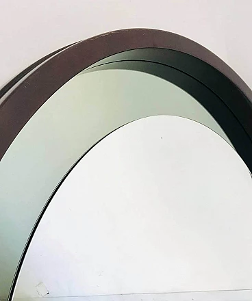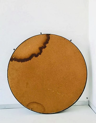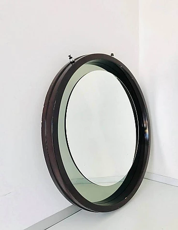 Specchio tondo da parete in legno, anni '70