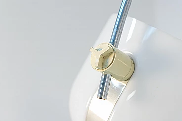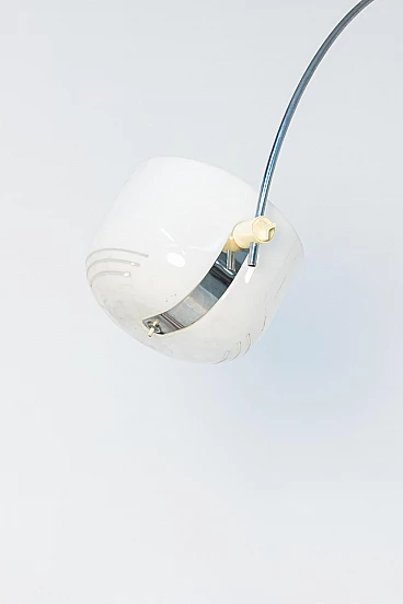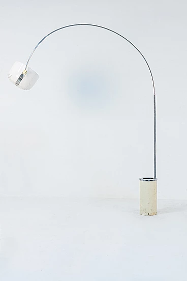 La lampada da terra regolabile vintage è stata progettata dall'artista e dal suo team sotto la supervisione di Luigi Massoni. La produzione è a cura dell'azienda dello stesso designer, ora denominata iGuzzini. La lampada da terra vintage è caratterizzata da una lunga e curva asta regolabile in metallo cromato. La base rotonda è in alluminio verniciato di bianco, verniciato con vernice testurizzata. La base è riempita di cemento per essere utilizzata come contrappeso. La base ha una particolarità: il ripiano è incassato e funge da posacenere cromato o da contenitore. Difetti e mancanze la lampada e da cablare elettricamente.