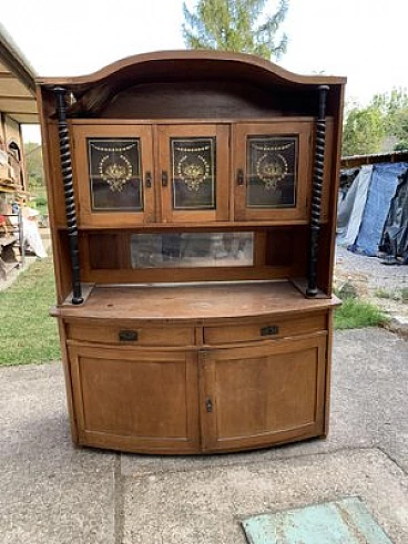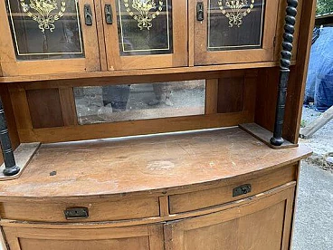 Credenza Art Nouveau ungherese in legno e vetro, inizio '900