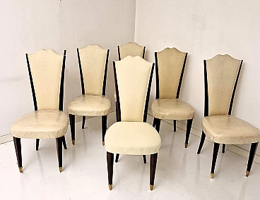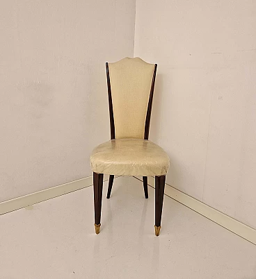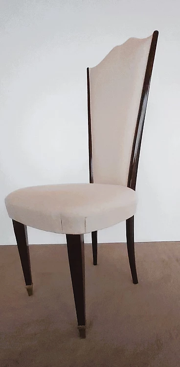 6 Sedie in legno massello tinto palissandro e tessuto, anni '40