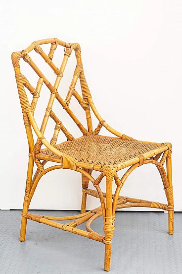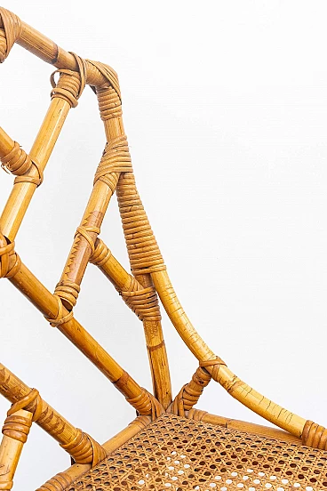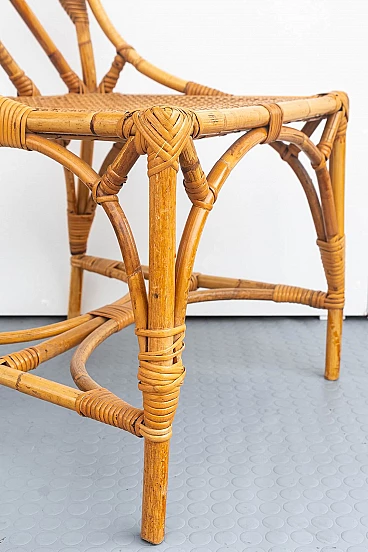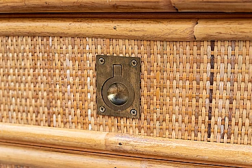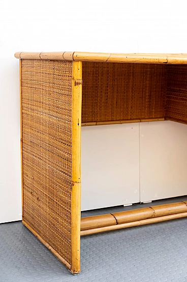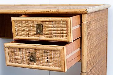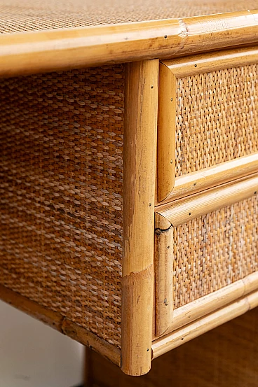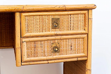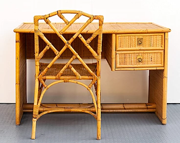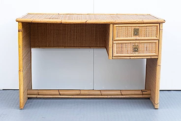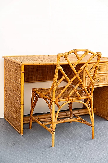 Scrivania e sedia in bambù, vimini e paglia di Vienna, anni '70