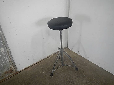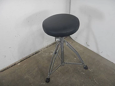 Sgabello da batteria pieghevole in metallo e similpelle, anni '80