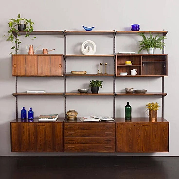Libreria modulare in palissandro con cinque armadi di Kai Kristiansen per FM Mobler, anni '60