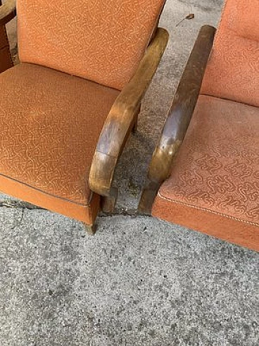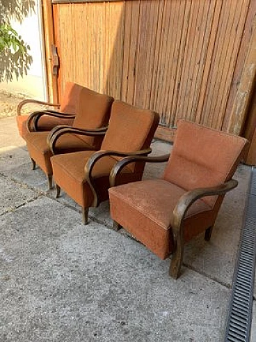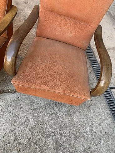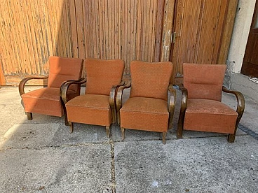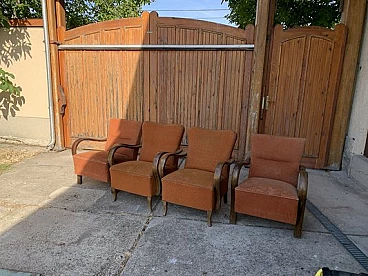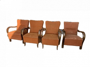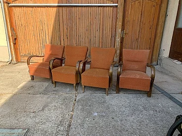 4 Poltrone in legno curvato e tappezzeria, anni '30