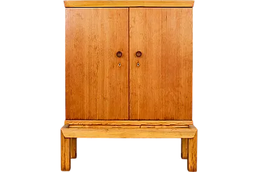Armadio in ciliegio e palissandro con rivestimento in tessuto attribuito a Josef Frank e realizzato in Austria nei primi anni '30. Probabilmente è uno dei primi progetti di Frank ma non è stato possibile confermarlo. Le caratteristiche di questo armadio sono simili a quelle dei suoi mobili: legno massello di ciliegio e impiallacciatura, impiallacciatura di palissandro, interno impiallacciato in betulla e rivestimento originale in tessuto con motivo floreale; anche la placchetta della serratura e le cerniere a sfera sulle porte rimandano al suo stile. In ogni caso si tratta di un pezzo unico eccezionale. Mobile solido e pesante ma aggraziato con le sue forme curve. Restaurato professionalmente.