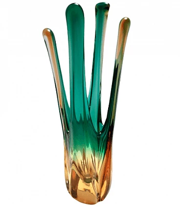 Vaso centrotavola in vetro di Murano verde e ambrato, anni '60