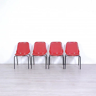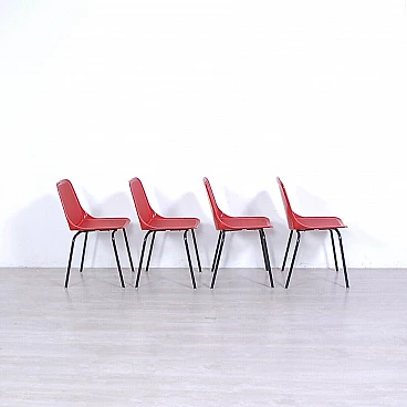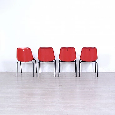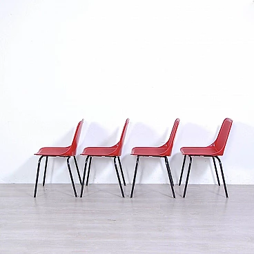 4 Sedie in ferro e plastica rossa di MIM Roma, anni '60