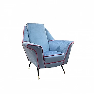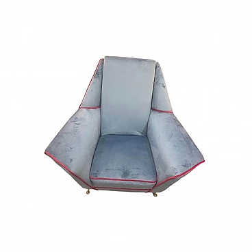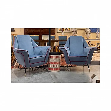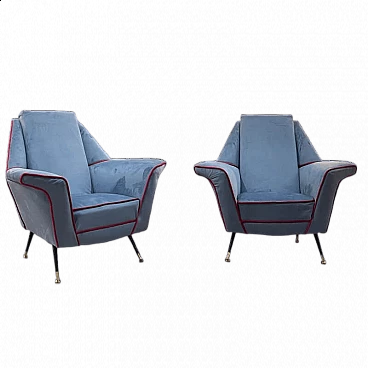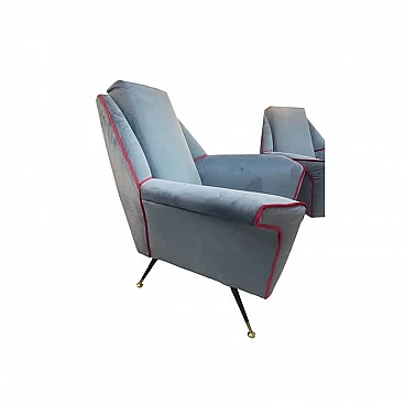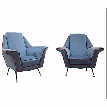 Coppia di poltrone in velluto con gambe in metallo e ottone, anni '50