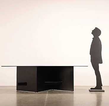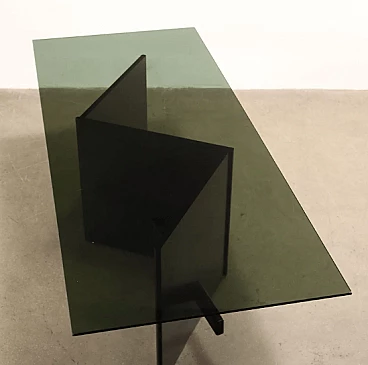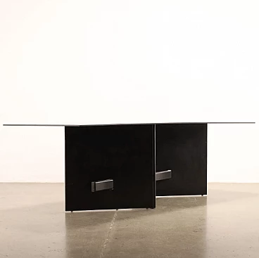 Tavolo in legno laccato e vetro fumé, anni '90