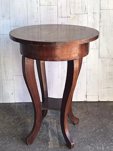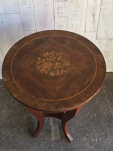 Tavolino rotondo stile Barocco in noce massello intarsiato, fine '800