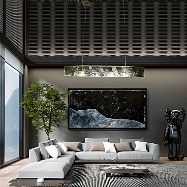 Lampada a sospensione in vetro di Murano e metallo di La Luce, anni '90