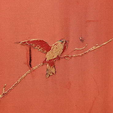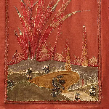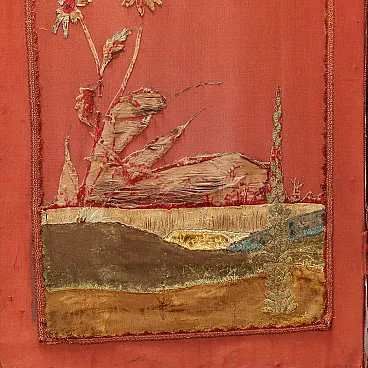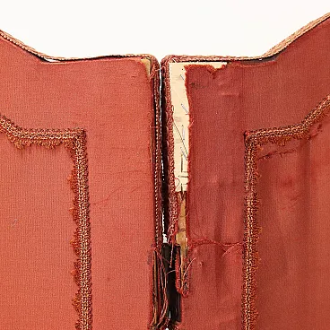 Paravento in stile chinoiserie con rivestimento in seta ricamata, inizio '900
